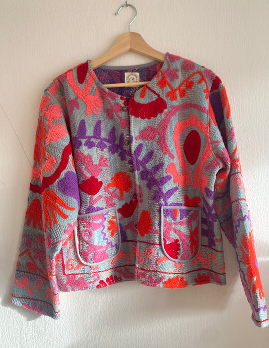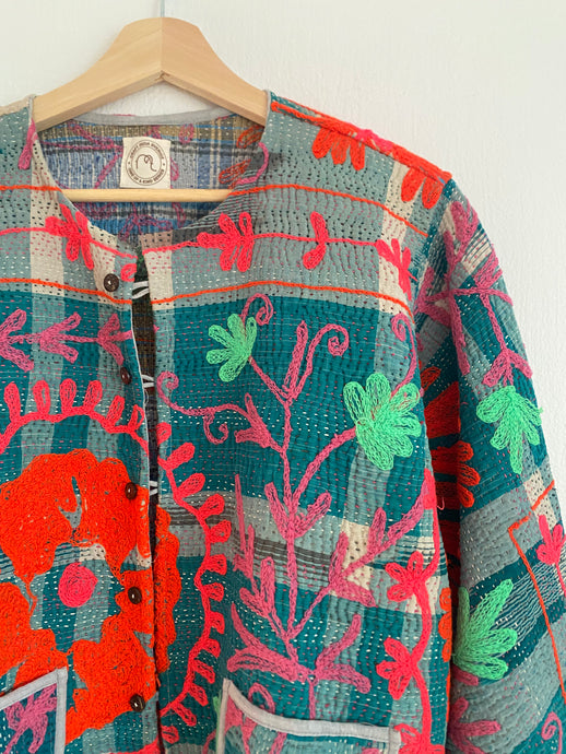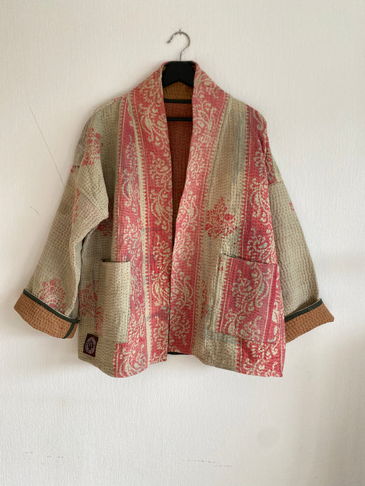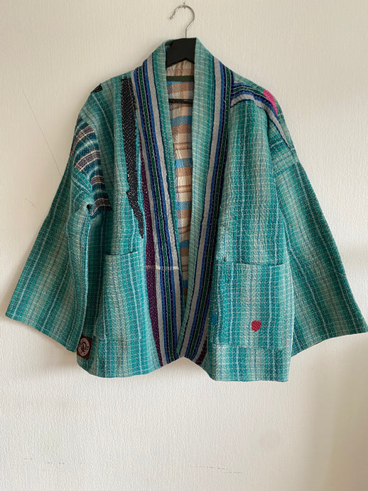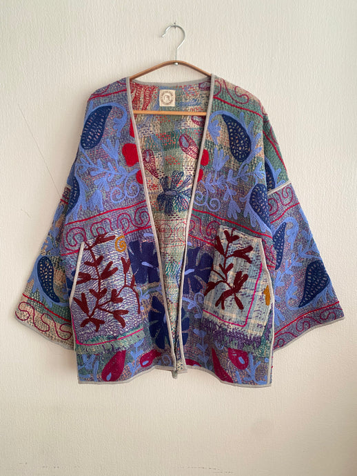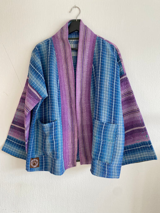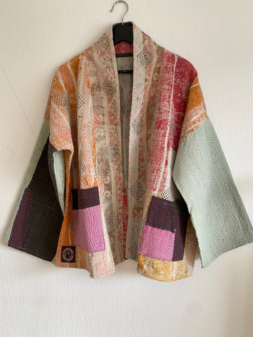 Denna vackra kantha jackor och västar är tillverkad av vintage kantha filtar. Alla de är unika! Kantha filtar är sammansatta av flera lager gamla Saarityger och därefter handbroderat med kantha stygn! Denna traditionella konstform praktiseras för det mesta av kvinnor i västra Bengal, Orissa och Bangladesh. Indisk kantha är väldigt lik de japanska broderiteknikerna Sashiko och Boro.