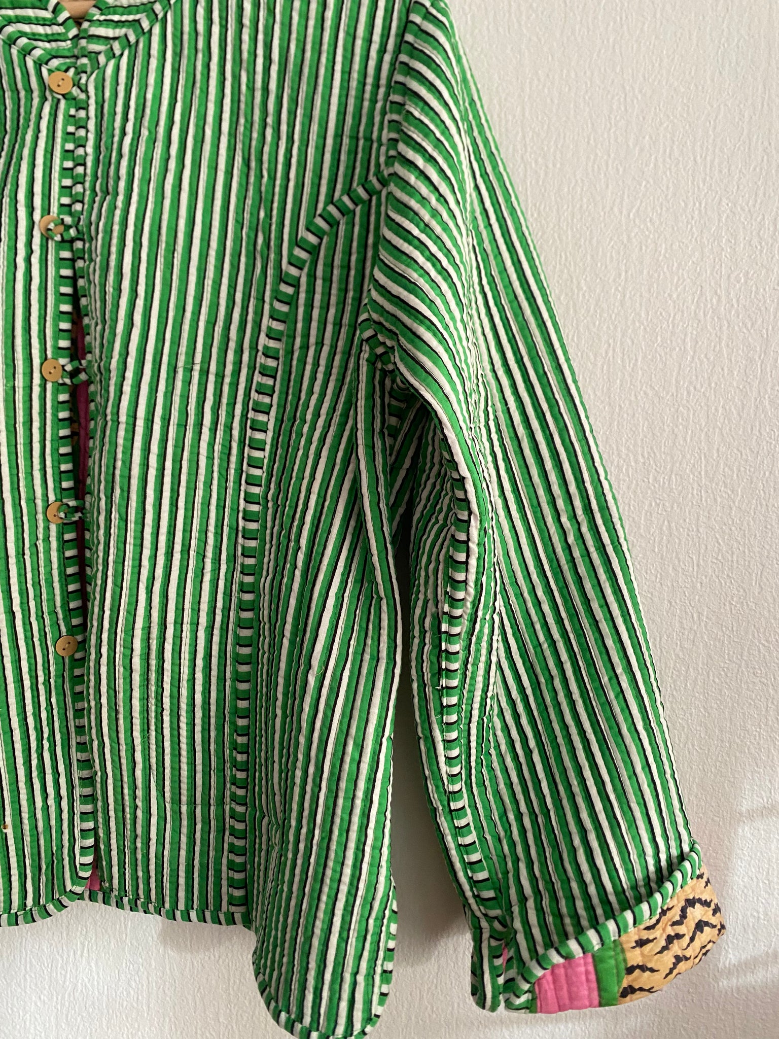 Detta är en jacka från vår nya kollektion. Vackra tryck och mycket bekväm passform, quiltad bomull . knappar i framtill. Enkelt att kombinera med alla dina outfits.