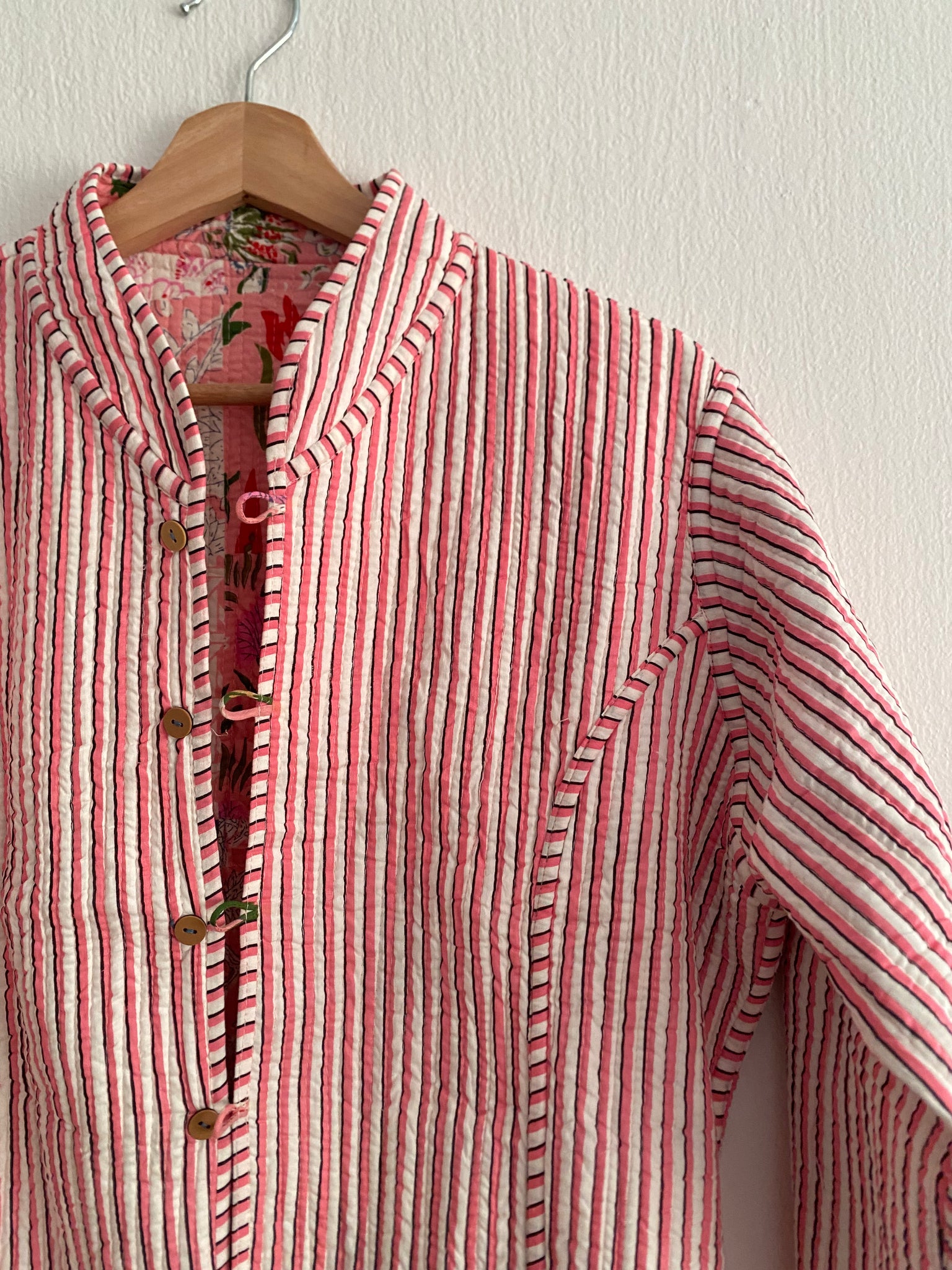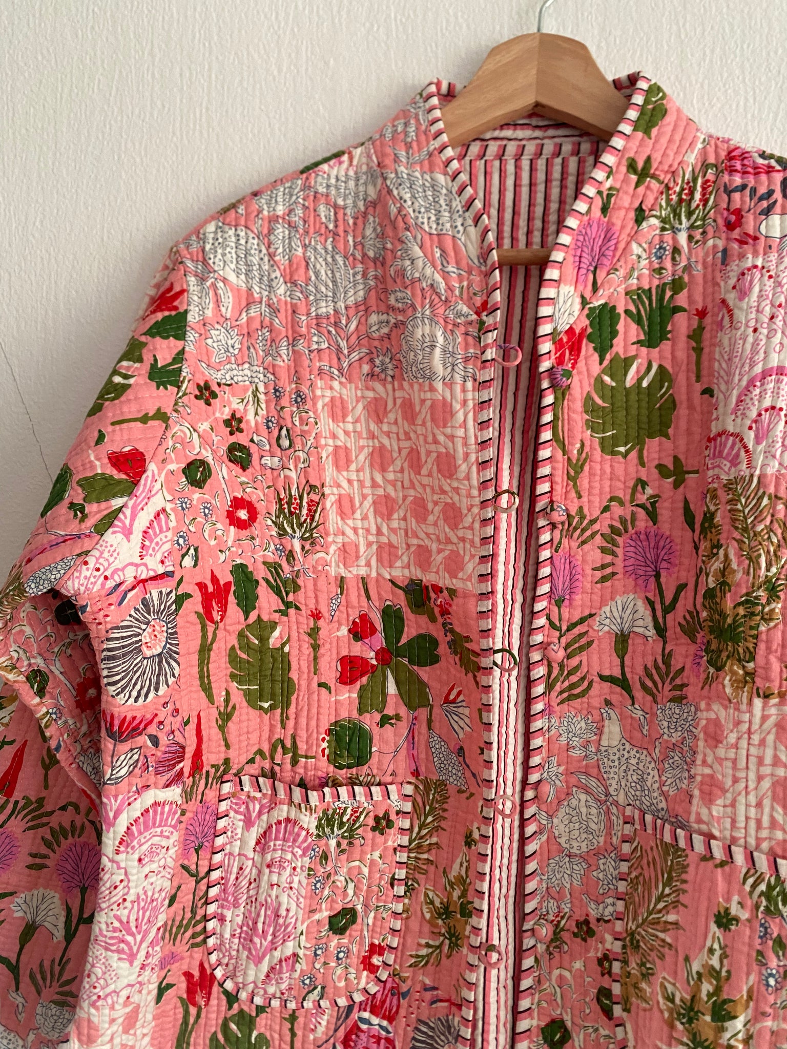 Detta är en jacka från vår nya kollektion. Vackra tryck och mycket bekväm passform, quiltad bomull . knappar i framtill. Enkelt att kombinera med alla dina outfits.
