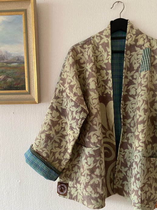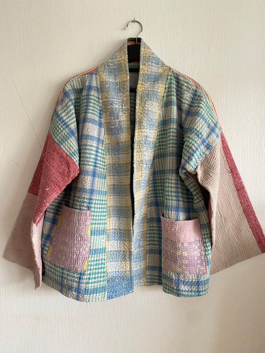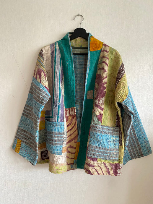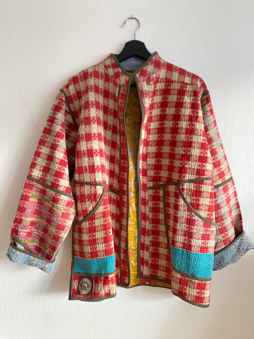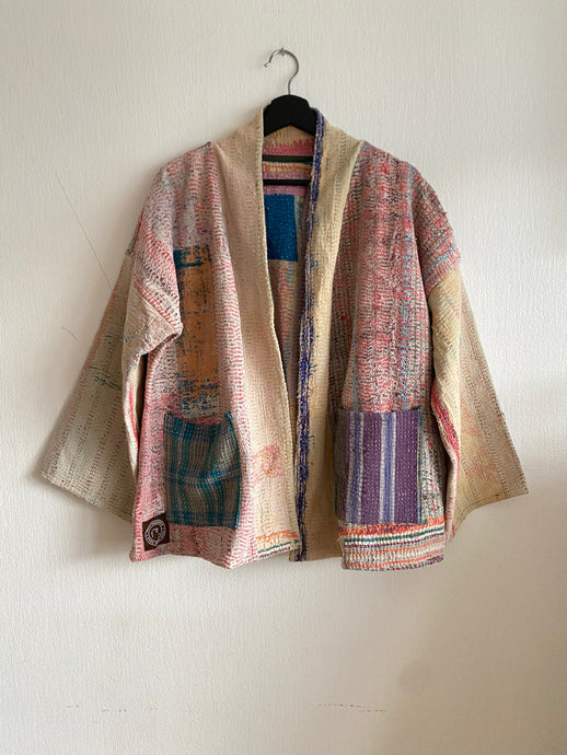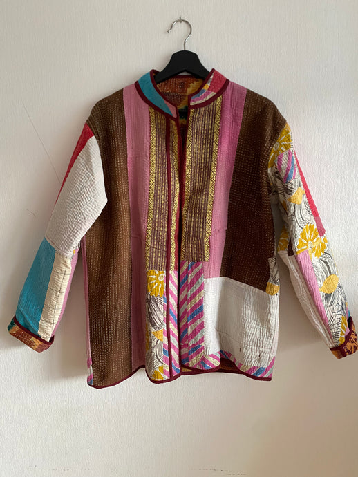 Denna vackra kantha jackor och västar är tillverkad av vintage kantha filtar. Alla de är unika! Kantha filtar är sammansatta av flera lager gamla Saarityger och därefter handbroderat med kantha stygn! Denna traditionella konstform praktiseras för det mesta av kvinnor i västra Bengal, Orissa och Bangladesh. Indisk kantha är väldigt lik de japanska broderiteknikerna Sashiko och Boro.