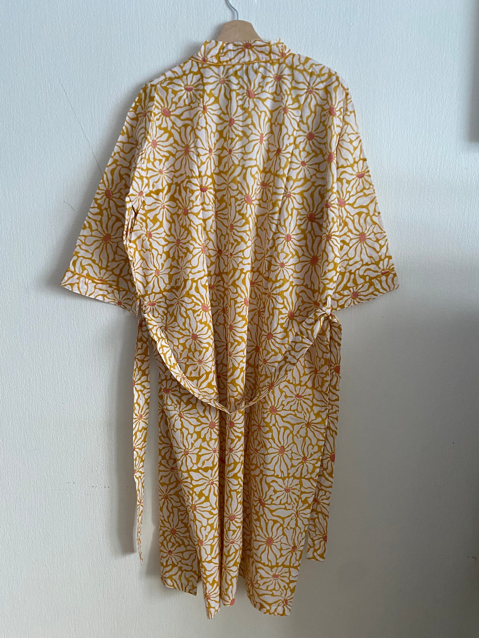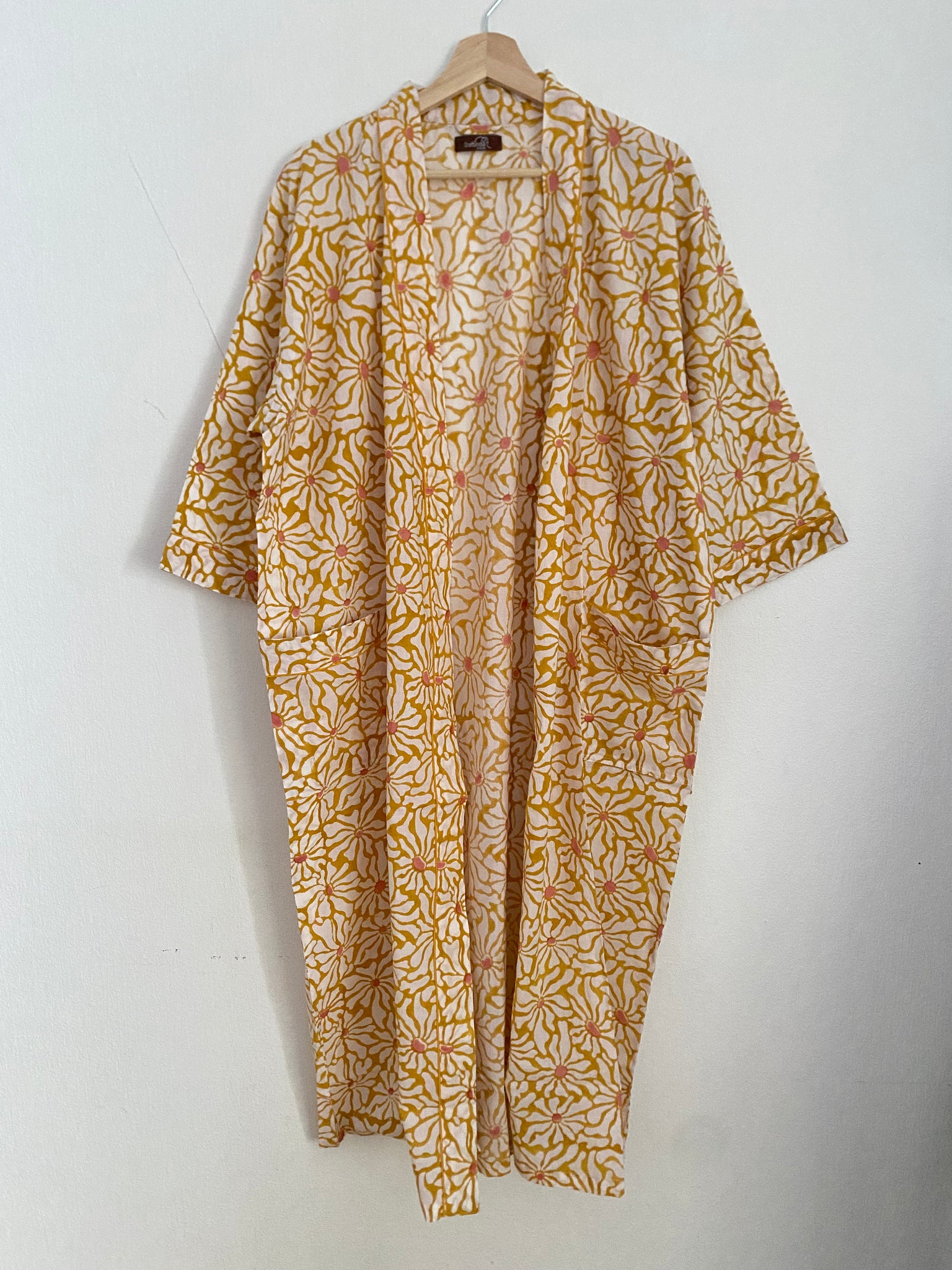 Våra bomullskimonos är blocktryckta för hand. Handtryckt mönster gjort med traditionell indisk blockprintteknik.  Blocktrycket är en konstform; en tillverkningsmetod som kräver enorm precision och hantverksskicklighet.